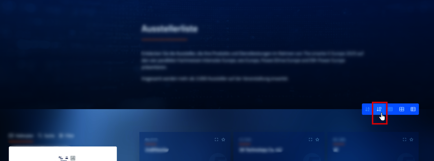 También puedes utilizar esta priorización para una clasificación especial según la relevancia dentro de las páginas de búsqueda, como las listas de expositores, "Todas las noticias", "Comunicados de prensa" y mucho más. Presta atención a las opciones de clasificación correspondientes en cada página.