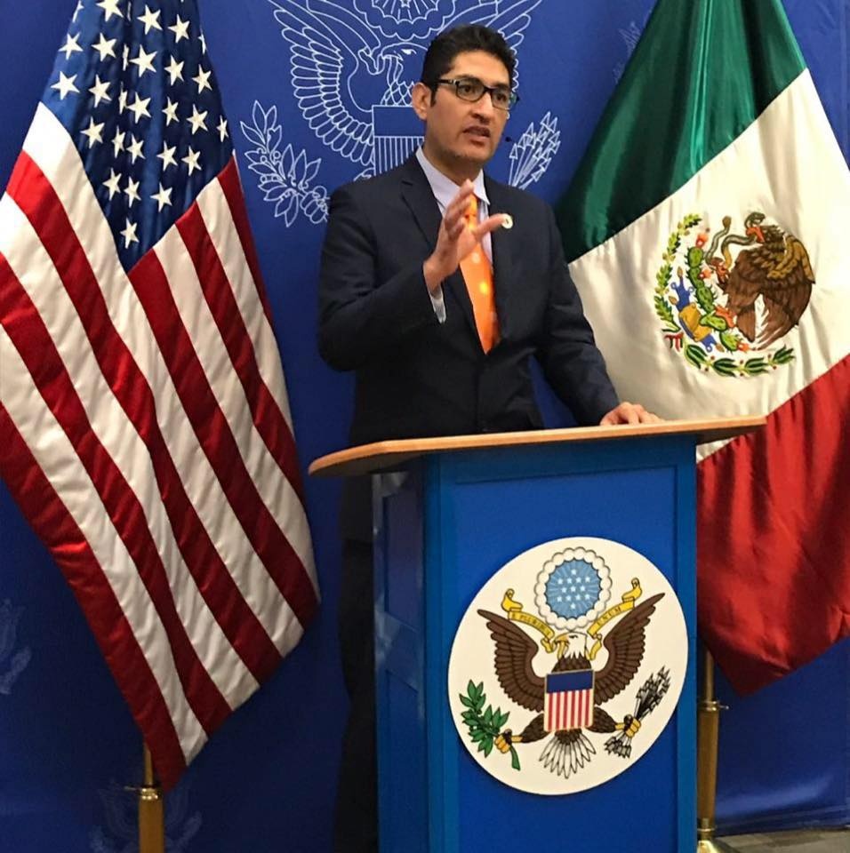 En 2013, fue seleccionado por el Departamento de Estado de EE. UU. Para representar a México en el Programa Trilateral de Intercambio de Energía Verde de América del Norte organizado por el Consejo Estadounidense de Jóvenes Líderes Políticos (ACYPL) donde tuvo la oportunidad de debatir ideas con líderes de alto nivel de los Estados Unidos y Canadá El equipo de tres países se reunió con funcionarios del gobierno en Washington, D.C., Phoenix y Vancouver, Canadá para analizar y aprender de las mejores prácticas en cada país.